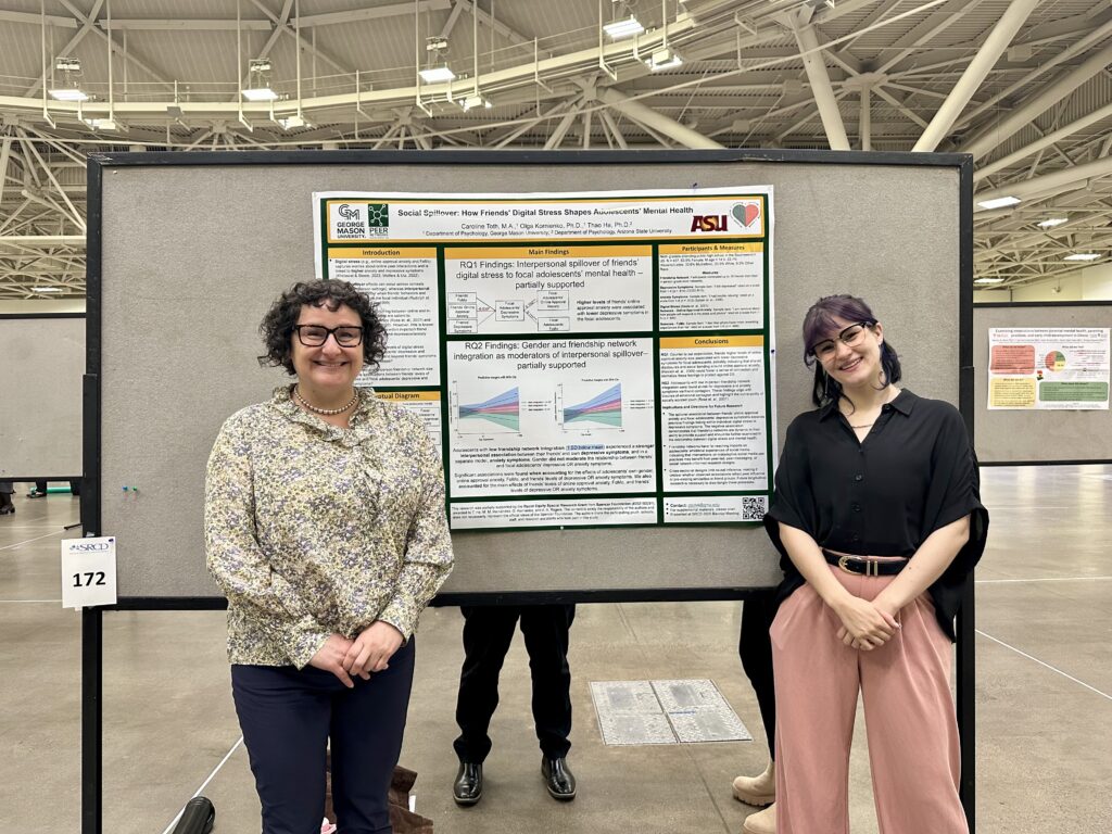 Dr. K and Caro Toth presenting on Social Spillover: How Friends’ Digital Stress Shapes Adolescent Mental Health at the Society for Research on Child Development Biennial Meeting, Minneapolis, MN (April, 2025)